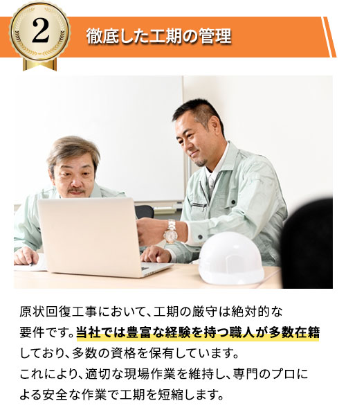 - 原状回復工法(方法)・費用を迅速にご提案、ご説明。